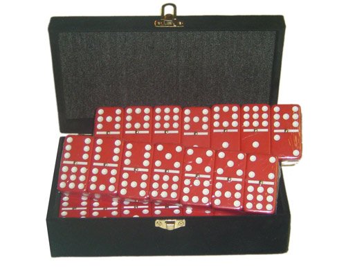 One Double 9 Set of Dominoes (55 red tiles) with spinners for easy mixing. Comes in a deluxe velvet case. Read more...