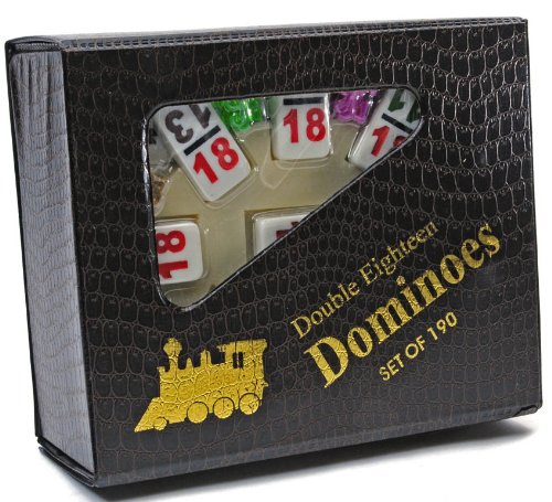Enjoy playing most dominoe games with this deluxe, professional size, double 18, numbered set of dominoes. All double 18 sets have 190 dominoes. Large double eighteen sets allow for longer play, more interesting play and bigger groups of players.