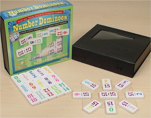 Play almost any domino game including Mexican Train and Chickenfoot with these double 15 dominoes with color coded numbers. The jumbo-size numerals are easy to read and tally and the color coding is not only attractive, but it will help you identify the numbers