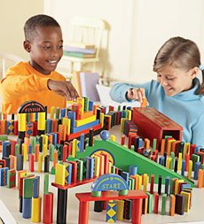 Domino Race Set. Season after season, our customers have loved this best-selling game. So, we made it even better - we updated colors, added patterns, increased the number of pieces, and added a few new cool challenges. Arrange the dominos in a serpentine pattern, up and down steps, over and under bridges -- and end with a bang. Tip the first domino (or run a marble down the ramp) to start a chain reaction (the domino effect) that brings the whole array down in seconds! The Domino Race Set includes 255 pieces. The Add-On Set (24 pieces) brings more action to the race with a pyramid step set, tunnel set, ramp, and a ball. Domino Race Set includes 255 pieces 78 solid pieces (13 each, 6 colors) 78 squiggle striped pieces (13 each, 6 colors) 72 diamond printed pieces (12 each, 6 colors) 3 starting gates 3 finish gates 1 starting wand 1 end sign 6 pyramid steps 13-piece dowel stair and bridge set This game keeps children ages 4 to 12 involved for hours; teens and adults will want to join in, too. Classic Domino Race SpecialSave .98 when you buy our Domino Race Set and Add-On Set together. Only .98 WARNING CHOKING HAZARD (1,4 Read more...