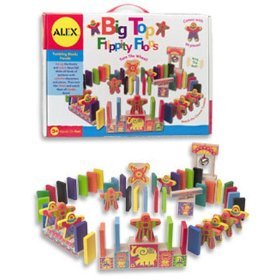 This classic domino race comes with a fun circus theme. Set up the 70 colorful dominoes and 10 beautifully screen printed clowns across a three-ring obstacle course. Then start the race and watch them tumble and fall up and down stairs, through the ring of fire and circus spinner -- finally ringing the bell. Kids can get creative and use all kinds of other obstacles to complete their domino race. Set contains 70 dominoes, 10 clowns, 13 accessory blocks and storage bag. Read more...